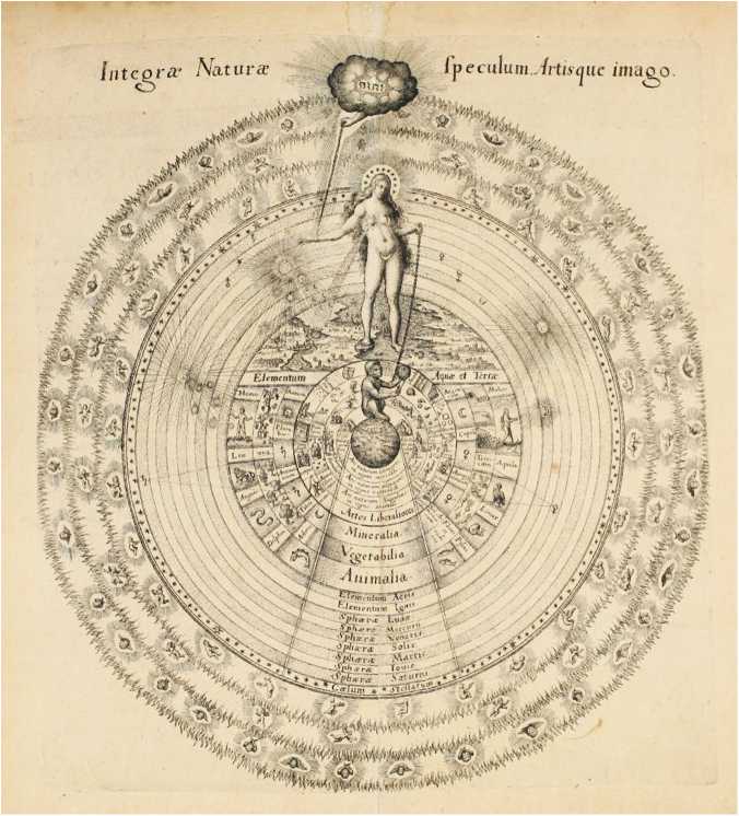 «Искусство как зеркало всей природы» Гравюра Маттеуса Мериана Старшего к «Истории двух миров, великого и малого» Роберта Фладда, Оппенгейм, 1617–1621 годы