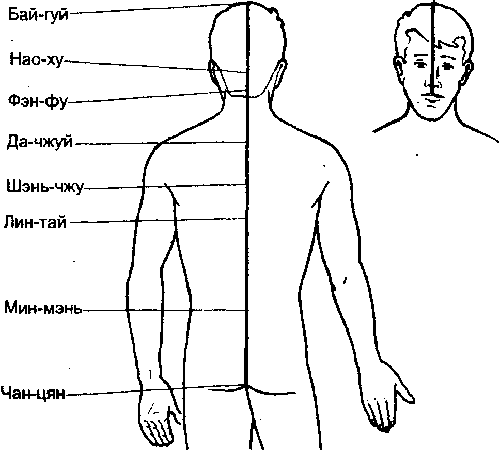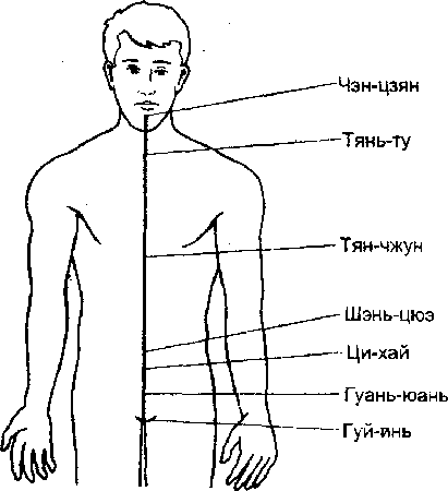 Меридианы жэнь и ду вместе с их главными энергетическими точками изображены на рисунках 4.14 и 4.15.