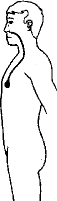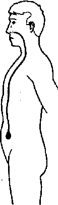 Рис. 8.1 дает наглядное представление, почему “дыхание животом” дает больше энергии. Путь энергии до живота гораздо длиннее, чем до груди. Горловое дыхание, каким дышат много пожилых людей, еще хуже. Поток энергии к горлу так короток, что эти люди очень быстро начинают задыхаться.