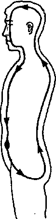 Мастер цигун способен на большее, чем заурядное дыхание животом. Он может распространить свое дыхание по всему телу по кругу вдоль меридианов жэнь и ду, по так называемому потоку ци малой вселенной (также его называют микрокосмическим энергетическим потоком; рис. 8.2).