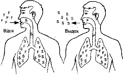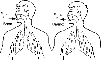 Рис. 8.1. РАЗНИЦА В ПОТОКАХ ЭНЕРГИИ ПРИ ДЫХАНИИ ЖИВОТОМ И ГРУДЬЮ
