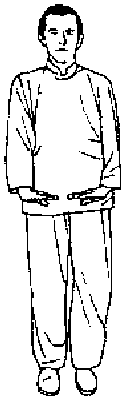 Встаньте прямо, расслабьте мышцы, ноги поставьте вместе. Руки опустите вниз.