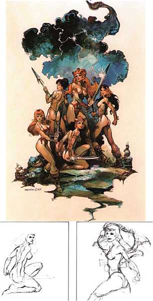 Готовя типично фантастическую композицию, где есть главный герой, леди и монстр, можно задаться вопросом: что я хочу сделать самым важным? Горы на заднем плане? Облака в небе? Может быть, меч в руке героя? Самого героя?