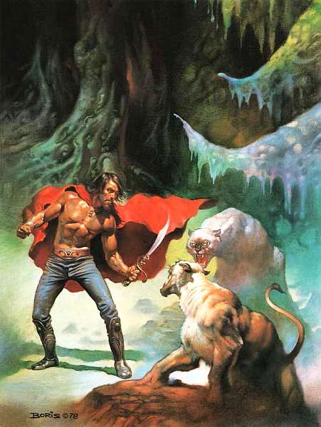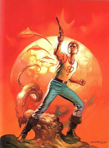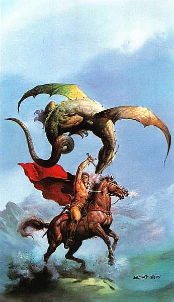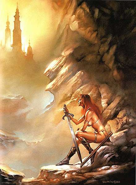 Первый этап любой картины — это набросок. Я предпочитаю пользоваться пером и чернилами. Обычно я использую рапидограф, пусть даже у него не столько возможностей, сколько у тонкого стального пера, — главное, что его не нужно макать в чернила. Меня это больше устраивает, и я могу получить с его помощью довольно интересную линию. Для цвета я использую чернила Luma или Dr. Martin's — прозрачные и очень яркие. В определенных участках (на небосклоне и частично на горах) я использовал цветные карандаши Prismacolour, потому что они кроющие. По той же причине я также взял немножко белой акриловой краски для световых акцентов на горах.
