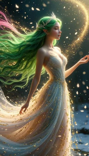 Девушка, если можно было ее так назвать, была очень красивой. Милое лицо, не нуждающееся в косметике. Зеленые волосы и такого же цвета глаза. Восхитительная, спортивная фигура. Вид портил, только ее тонкий, хвост, извивающийся в разные стороны. А вот черные и заостренные ногти делали девушку более женственной. Образ дополняла белая корона на голове, напоминающая диадему. Пока юноша думал об этом, паук сплел белое, пышное платье.