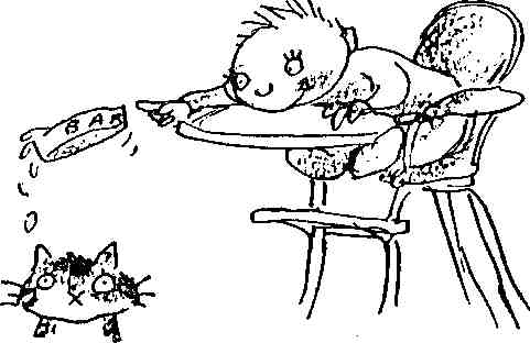 Но есть и другая сторона. У стула спереди приделано что-то вроде подноса. Это прелестная вещь. Чрезвычайно приятно размазывать по нему кашу и пюре с помощью локтей. Кроме того, там имеются перильца – как будто специально для того, чтобы стучать ложкой. И потом, стул довольно высокий, а с высоты, как известно, удобнее находить цель и метко бросать полную миску.