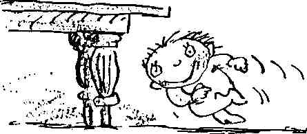 Честно говоря, трудно было сохранять безучастное выражение лица. Выглядело это на редкость глупо: взрослый человек крадучись передвигается по комнате и громко нашептывает всякие глупости из разных углов. А когда он подошел и стал орать прямо мне в ухо, сдержаться было почти невозможно.