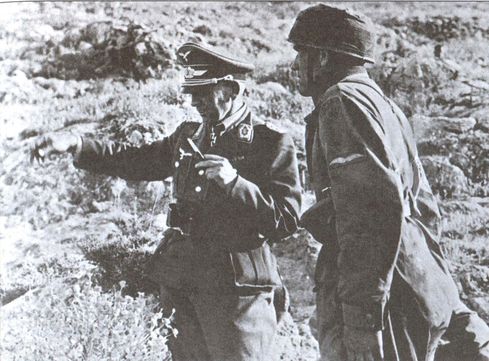 Командир одной из боевых групп полковник Ганс Бауэр (слева) дает указания одному из парашютистов. Перед высадкой его отряд насчитывал около 200 человек. Крит, район Гераклиона, май 1941 года (АВЛ)