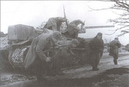 Высадка десанта пехоты с танка Т-34/76 (тактический номер «008»). 4-й гвардейский механизированный корпус, сектор наступления 51-й армии Южного фронта, январь 1943 года (АВЛ)