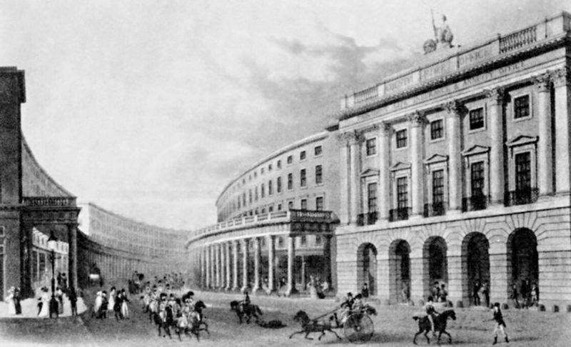 Самой красивой частью улицы Пикадилли был изгиб, названный Квадрантом. Архитектор Нэш украсил улицу и площадь чудесными аркадами, выстроенными в классическом стиле. К сожалению, их можно увидеть только на старинных гравюрах. От старого облика улицы Пикадилли сохранились лишь ее начало и конец.