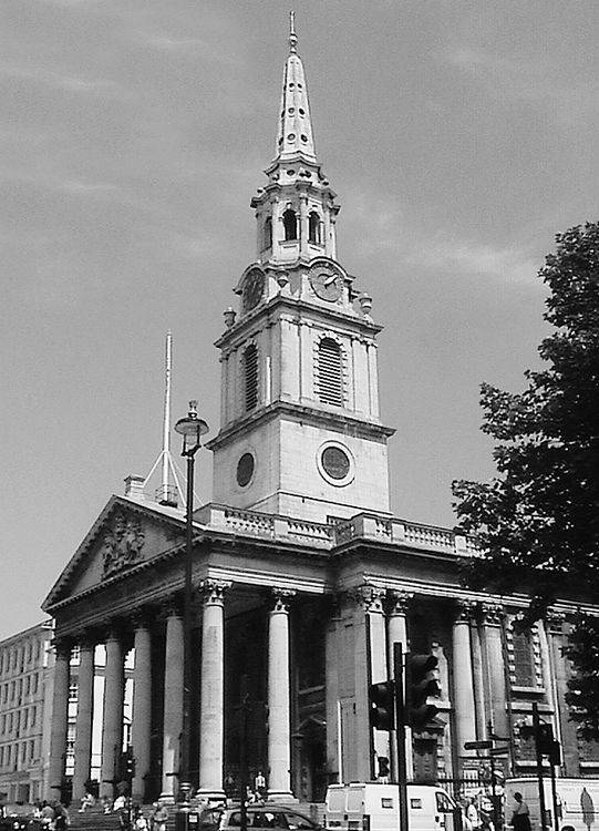 Невозможно представить себе Трафальгарскую площадь без церкви Сент-Мартинз-ин-де-филдз. Это здание самое старое из тех, что обрамляют площадь. Церковь была построена в 1720-х гг. по проекту архитектора Джеймса Гиббса. Это считается лучшей его работой.