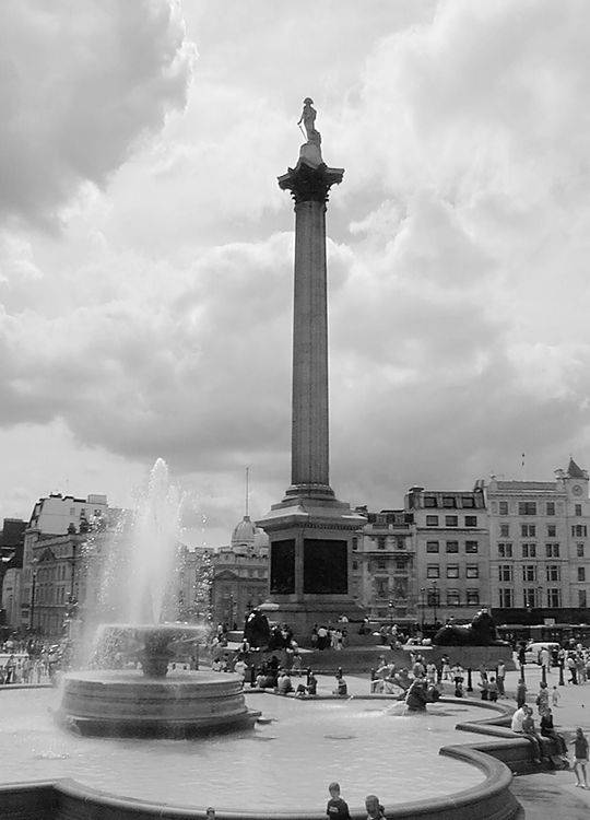 Автором колонны высотой 44 м был Уильям Рейлтон, а создателем пятиметровой фигуры адмирала – скульптор Бейли. У подножия памятника, у каждого угла мощного пьедестала, застыли огромные бронзовые львы. Возле памятника всегда много голубей, которые совершенно не боятся туристов. В 1939 г. были построены два фонтана, украсивших старую площадь.