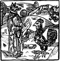 вылез из колодца и оставил Волка на дне. Как тот, кто ради будущего отказывается от вещей, которые имеет сегодня, Волк не получил ни быка, ни сыра». Петр Альфонсин также упоминает и историю о том, как Лис встретил на полях только что родившегося Мула и пожелал узнать о его происхождении.[4]