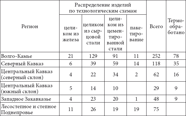 Типологические разработки А. Х. Халикова и В. С. Патрушева позволили конкретизировать многие аналогии. Данные, полученные нами на основании представительной серии металлографических анализов из памятников Волго-Камья, дают возможность провести сравнительный технико-технологический анализ с материалами синхронных памятников Кавказа, а также другого региона Восточной Европы, где наиболее рано появляются изделия из черного металла, – лесостепного и степного Поднепровья.