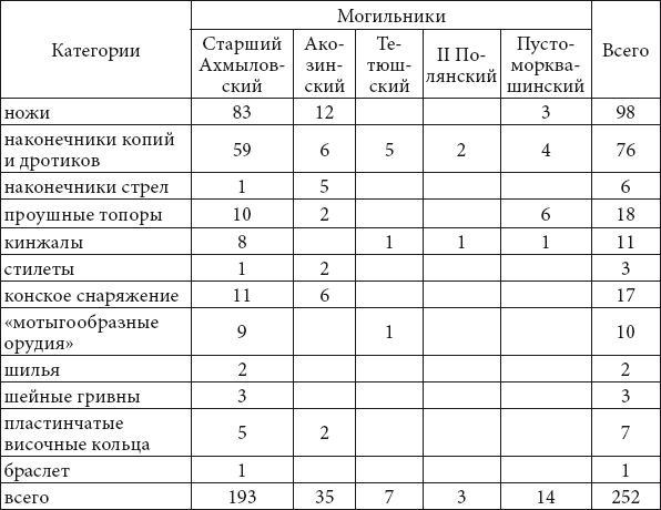 Исследованная коллекция (табл. 1) включает такие категории, как ножи (83 экз.), наконечники копий и дротиков (59 экз.), наконечник