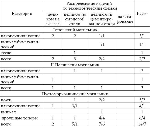 Технологическая характеристика кузнечных изделий из Тетюшского, II Полянского и Пустоморквашинского могильников