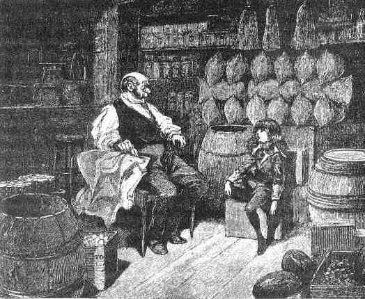 Когда мистер Хэвишем, поверенный графа Доринкорта, дедушки Седрика, присланный им за мальчиком, пришел на другой день, ребенок многое узнал от него. Но мысль о том, что со временем он сделается богатым, будет иметь много замков, парки, обширные земли, шахты и фермы — вовсе его не утешала. Он озабоченно думал о своем друге мистере Гоббсе и сразу после завтрака отправился к нему в лавку. Гоббса он застал за чтением газет и подошел к нему в большом беспокойстве, чувствуя, что все, что с ним случилось, будет тяжелым ударом для его друга; дорогой он обдумал, как объявить об этом.