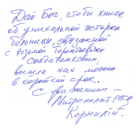 С изменением общественно-политического строя в России, начиная с «перестройки», в информационном поле появилось огромное множество свидетельств и документов, способных дополнительно пролить свет на историю страны и, в частности, на историю Боткинской больницы. В наших руках оказались бесценные документы местного партийного комитета, среди которых нашлось множество небольших по объему очерков и записок воспоминаний старейших работников больницы, значительное количество старых фотографий и альбомов, «оживляющих» персонажей нашей книги. Много пришлось поработать в архивах для выяснения биографических данных, немаловажных для раскрытия личностей работников больницы. Использовалось большое количество мемуарной литературы и монографических исследований, а также литературы по истории страны. Особое место в источниковедческой базе для написания данного труда послужили отчеты больницы, содержащие важнейшую информацию об истории Боткинской больницы. Личное общение со старейшими работниками больницы принесли много пользы для установления некоторых значимых фактов. Это известные многим работники Боткинской больницы: доценты кафедры анестезиологии и неотложной медицины РМАНПО А. А. Митрохин и С. А. Осипов, врач-реаниматолог В. А. Чекина, врач-нейрохирург И. Л. Кумок, профессор В. И. Якушин. Мы выражаем им свою признательность. Отдельной благодарности заслуживают правнучка одного из первых ординаторов больницы Ольга Хрущева, правнучка священника Н. Соколова Ольга Львовна Сергеева и правнук В. Н. Розанова Федор Андреевич Семенов за предоставление очень ценного материала о жизни и работе своих родственников.