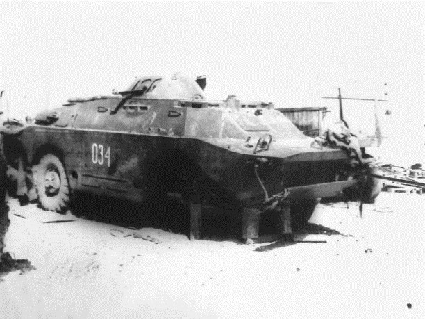 БРДМ третьего дивизиона. Вывезен в рем. зону тех. парка полка с места подрыва группой солдат под руководством командира авторемонтного взвода старшего прапорщика Городиского Андрея Якубовича (из личного архива Владимира Карпухина)