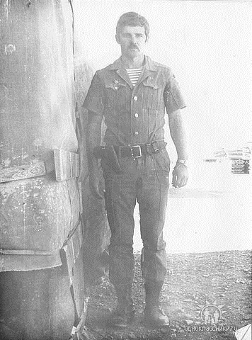 "Время службы в полку: ноябрь 1980-май 1982. Один из первых офицеров, награжденных в полку медалью «За Отвагу». Как попал в полк? Из Ташкента долго отправить не могли. Самолет по какой-то причине приземлился в Кандагаре. Нас осталось трое. Я, лейтенант (он был направлен в рем. роту замполитом) и симпатичная медсестра. На аэродроме случайно оказались офицеры из группы «КАСКАД». Нас увезли отдохнуть в их резиденцию. Там впервые угостили кишмишевкой. Я трезвенник, сразу опьянел. На следующее утро вылетели на афганском транспортном самолете в Шинданд. Кругом афганцы, а мы без оружия. Закончилось все без проблем. С аэродрома позвонили в полк и за нами прислали «Урал». Должности замполитов рем. роты и автороты были свободны. На Новый год уже был ответственным офицером по автороте.