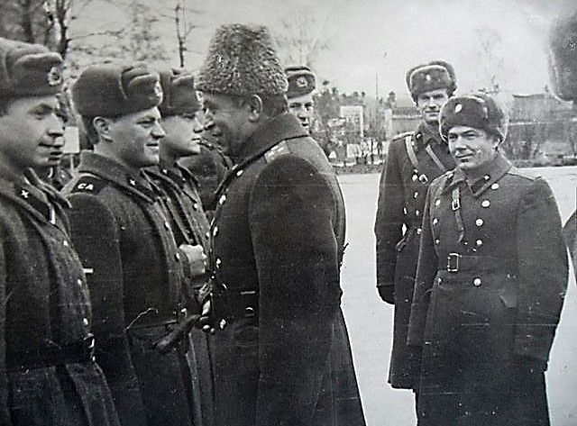 Польша. Реактивный дивизион. В центре - начальник артиллерии СГВ (Северной группы войск) полковник Карапетян, рядом - замполит нашего дивизиона м-р Попов и комбат 3-й батареи ст. л-т Волдайкин В. (из личного архива Александра Бондаренко)