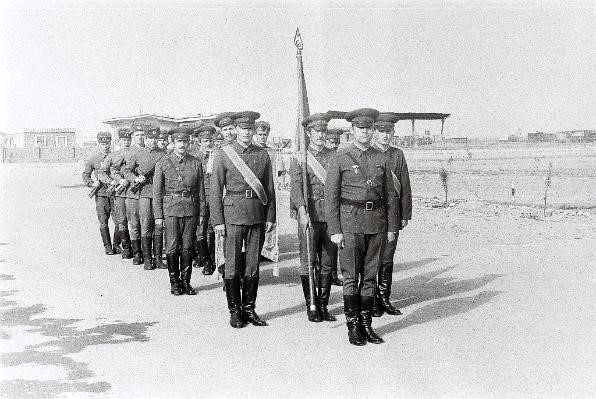 Проводы в Союз четвертого командира полка п-ка Рогозина В.Ф. Он слева седьмой в фуражке и солнцезащитных очках (из личного архива Юрия Баранова)