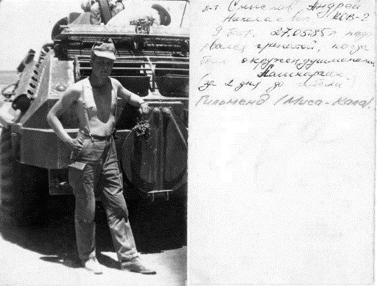 Эту фотографию прислал для книги однополчанин Алексей Рукавицын. На обратной стороне фотокарточки надпись: «Л-т Смыслов Андрей Николаевич. КОВ-2. 9 бат.27.05.85 г. подорвался гранатой, когда был окружен душманами. Лашкаргах (за два дня до гибели). Гильменд (Муса-Кала)»