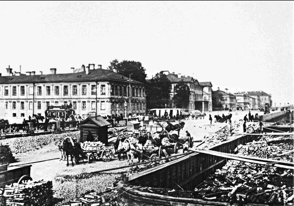 Мощнейшему импульсу промышленного развития, который был задан Петербургу едва ли не с момента его возникновения, город обязан даже не столько своему столичному статусу, сколько географическому положению, доставшемуся ему от природы. Полноводная Нева с ее многочисленными рукавами и не менее многочисленные другие естественные, а затем и искусственные водные протоки вокруг невской дельты предоставили городу такие транспортные возможности, не воспользоваться которыми было бы просто грешно. Уже осенью 1704 г. Петр I закладывает на левом берегу Невы судостроительную верфь — Адмиралтейство. Вдоль Невы, сначала на левом, а потом и на правом берегу, возникают и другие промышленные предприятия: канатный и смоляной дворы, партикулярная верфь, буяны для складирования и хранения товаров, пристани для их разгрузки, первый Гостиный двор для торговли плодами производства.
