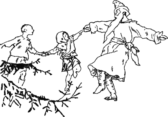 Дети так и льнули к нему, и только самая маленькая гостья, укутанная в пуховую шаль, которую мама не позволила снять, долго не решалась протянуть деду свою руку, пятилась, прячась за мать, и даже всплакнула сперва. А потом уверилась, что ничего страшного тут нет, и, доверчиво вложив свою ручонку в руку деда, на которой красовалась огромная расписная рукавица, все допытывалась:
