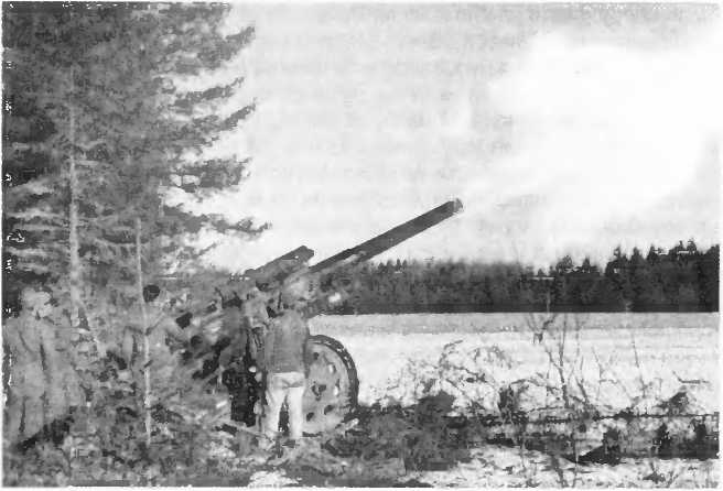 Огонь ведет тяжелая 150-миллиметровая полевая Гаубица