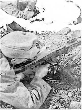 окопах, в которых не было ни матрасов, ни санитарных устройств и — в идеальном случае — в день в жестяной посуде выдавалась одна продовольственная пайка. Если солдат погибал, его товарищи тут же хватались за его рюкзак, запас боеприпасов, что опять же повышало собственные шансы на выживание.Пулеметчик за работой. Восточный фронт, август 1944 г.