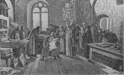Иван IV на Печатном дворе. С картины С. Штейна.