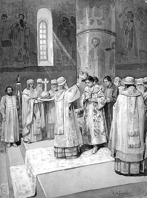 Венчание и принятие царского титула Иоанном IV. Художник Клавдий Лебедев