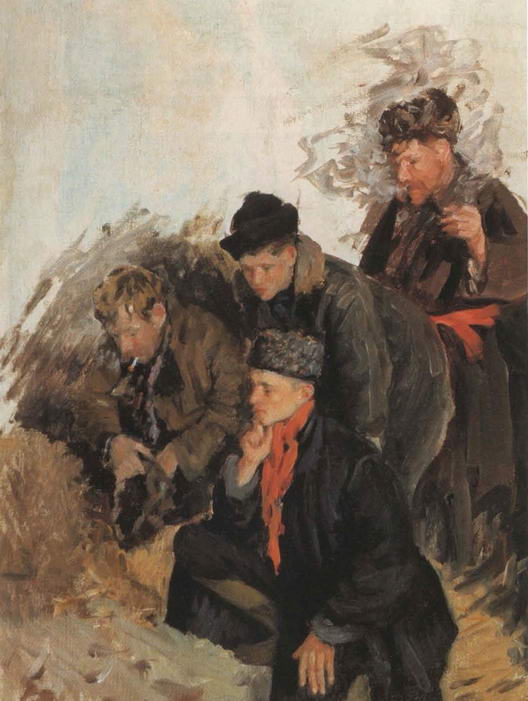 Несколько лет художник делал эскизы, а затем написал полотна Комсомол в деревне, Смычка города и деревни, Военизированный комсомол. В них художник рассказывает о приходе отряда городских комсомольцев в деревню для оказания помощи в организации колхоза.