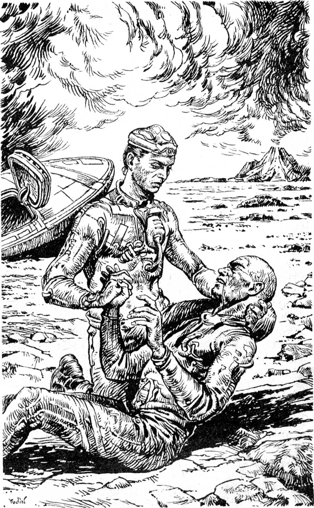С мучительным усилием Ардах распрямил свое легкое, хрупкое тело. Его окружали смерть и разрушения. Повсюду в разных позах лежали трупы — тела тех, кто не пережил ужасного столкновения. То были изящные и стройные люди, чью кожу покрывал темный загар долгих космических странствий. Ардах с надеждой огляделся по сторонам; ему показалось, что один из них пошевелился и слабо застонал.