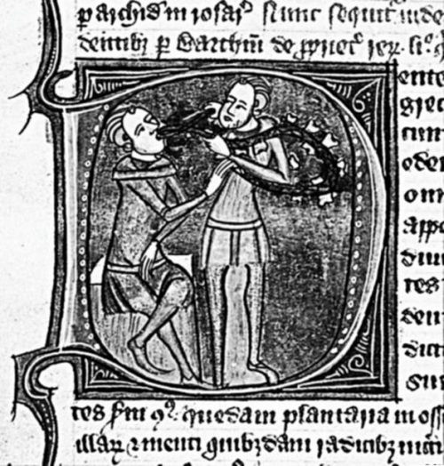 Миниатюра из средневекового трактата. Удаление зубов. 1300-е гг.