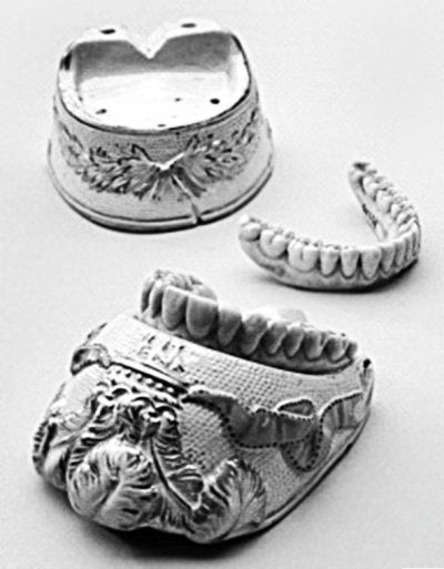 Фарфоровые полносъемные зубные протезы стали невероятно популярны и постепенно вытеснили с рынка зубные протезы, изготовленные из человеческих зубов, полученных из трупов. Многие предпочитали внешне привлекательные фарфоровые зубы тому «трупному материалу», который в изобилии появился в начале XIX в. в период наполеоновских войн в Европе. Такие зубные протезы, изготовленные из зубов погибших солдат, получили именование «зубов Ватерлоо».