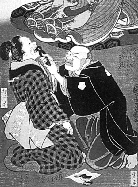 Наряду с зубоврачевателями, имевшими стационарные «клиники», на улицах японских городов, как и в Европе, зубоврачеванием занимались различные шарлатаны и знахари. Только в столице сегуната Эдо их насчитывалось в середине XVII в. до 5600 человек.