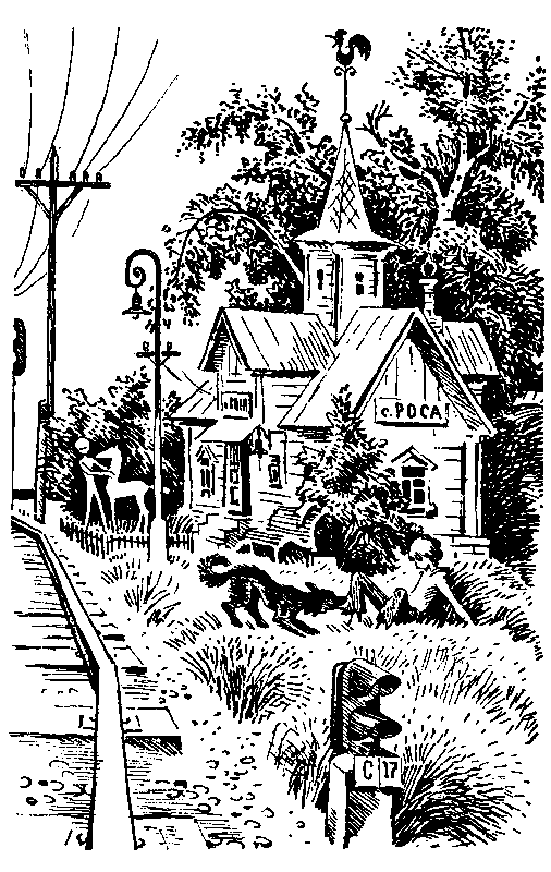 Станционный домик стоял среди лопухов и высокой овсяницы. Он был небольшой, светло-коричневый, с белыми кружевными карнизами. На острой башенке весело торчал жестяной петух. Он будто высматривал, не спешит ли сюда из-за дальних лесов какой-нибудь поезд. Но поезда появлялись редко: станция располагалась не на главной дороге, а на боковой ветке.