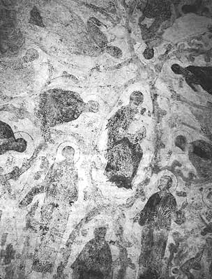Рис. 23. Фреска с изображением «античного» греческого историка Фукидида в Благовещенском соборе. Старая роспись XVI века. Фотография 2003 года