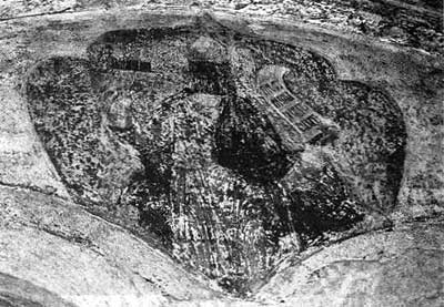 Рис. 21. Фреска с изображением «античного» греческого историка Плутарха в Благовещенском соборе. Старая роспись XVI века. Фотография 2003 года