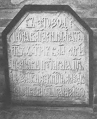 Вернемся к вопросу о том, насколько точно Романовы воспроизвели на кирпичных новоделах надписи со старых надгробных плит. Обычно считается, что надписи были воспроизведены достаточно точно. Но давайте посмотрим для сравнения — насколько точно были перенесены надписи с кирпичных новоделов времен первых Романовых на современные медные футляры со стеклянными стенками, сделанные уже в начале XX века. Это легко выяснить, поскольку славянские надписи XVII века видны сквозь стекла. Правда, необходим фонарик, потому что, будучи заключенными в футляр, многие надписи оказались в тени и прочесть их трудно.