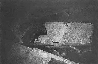 Рис. 36. Собранная из обломков каменных плит и оштукатуренная гробница в подклете Архангельского собора. Естественно, она развалилась при перевозке из Вознесенского монастыря. Неужели в таких дешевых гробах хоронили русских цариц? Фотография 1997 года