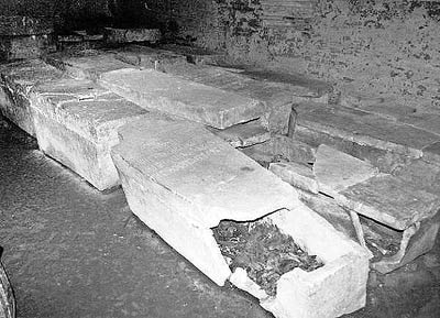 Общий вид гробниц, расположенных у одной из стен подклета, см. на рис. 42.