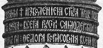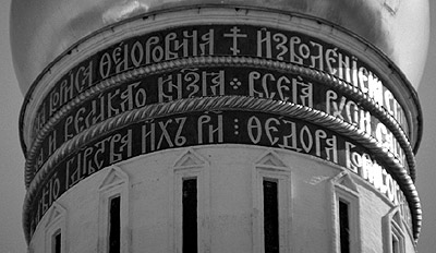Рис. 6. Надпись пол куполом колокольни Ивана Великого. Фотография 2005 года