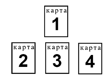 Этот расклад используется для того, чтобы узнать события ближайшего времени, например на неделю. Для его выполнения из колоды выбирают 4 карты и раскладываютя в указанном порядке (рис. 34). Если толкование вызывает у вас вопросы, можно вытянуть из колоды еще 1–2 карты для пояснения исходных карт.