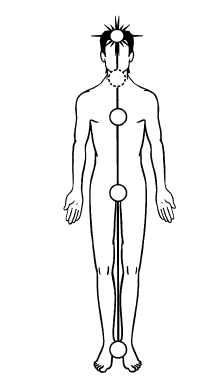 Малкут (энергия земли).Встаньте прямо, ощутите свой позвоночник как натянутую струну. Позвольте энергии проникнуть в ваше чело через верхнюю точку. Соотносите каждую точку с уже известными вам центрами сефирот.