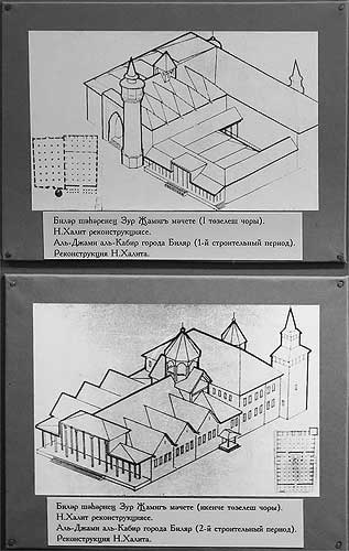 Сообщим некоторые подробности о раскопках Билярской мечети. «Здание мечети состоит из двух частей — деревянной и каменной. Первоначально (в период основания города) была построена деревянная часть. Она имела прямоугольную форму (44,5—48 метров на 30–32 метра) и была вытянута входом на северо-восток, а михрабной нишей на юго-запад к Мекке (на самом деле, к Царь-Граду — Авт.). Археологами обнаружены следы былой конструкции, фундамента стен, пола и несущих столбов перекрытия — более 650 ям глубиной 0,5–0,8 м (в некоторых зафиксированы остатки сгнивших деревянных столбов), расположенных в определенном порядке…