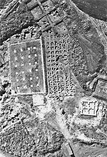 Рис. 95. Мы обозначили на аэрофотоснимке мечеть, «дом феодала» и колодец. Видно, что они составляют единый комплекс.