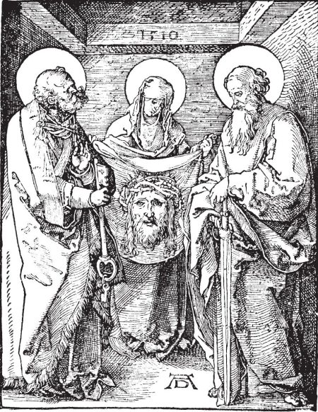 Рис. 12. Гравюра Л. Дюрера «Платок Святой Вероники». «Вероника» в данном случае – не имя, а словосочетание «вера-икона», то есть истинный образ [1234], гравюра 244
